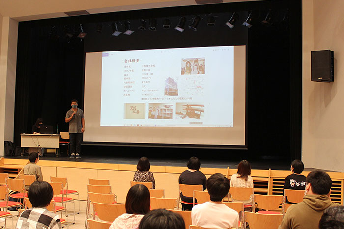 昨年に続き『天狗工房』の説明会を開催!世界で唯一のアニメ監督兼プロレスラーという異色の経歴(驚)を持つ、代表取締役社長 福士直也氏と人事担当者にお越しいただきました。