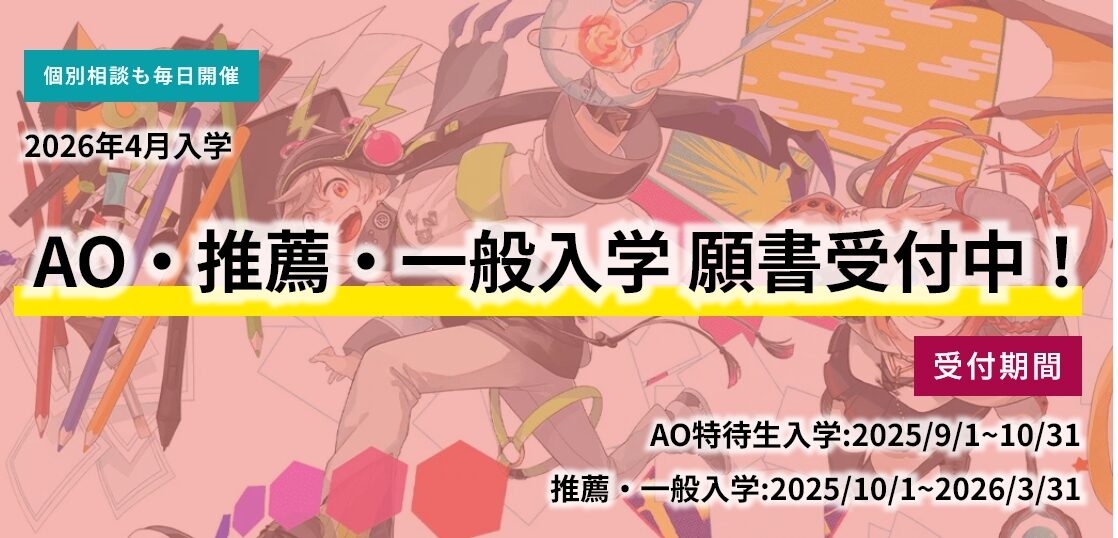 出願者の人物像を、学校側が求める学生像(アドミッションポリシー)に照らし合わせて合否判定をする入学方法です。目的意識の高い人物を評価し、「専門分野で活躍を希望する意欲的な人物」に学んでいただきたく、この入学制度を設けています。